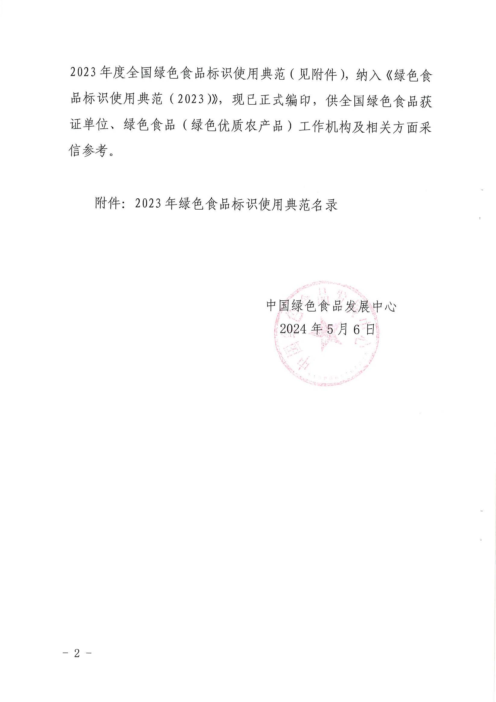 梅州市稻豐實業(yè)有限公司入選《2023年綠色食品標(biāo)識使用典范名錄》
